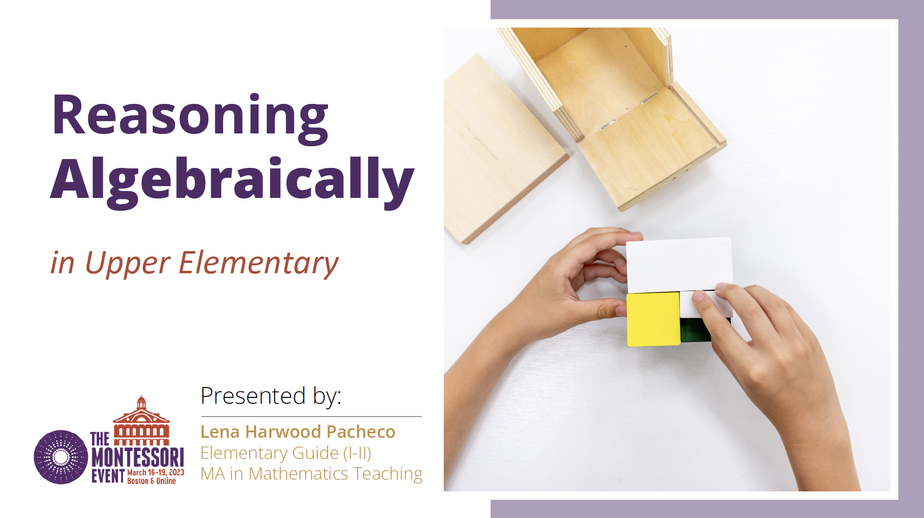 This session represents my current synthesis of these practices. Specifically, we will explore the techniques for promoting algebraic reasoning detailed in the book Connecting Arithmetic to Algebra and apply them specifically to a Montessori context. I am so excited to share my current thinking with other Montessorians and to improve our teaching practices together!
